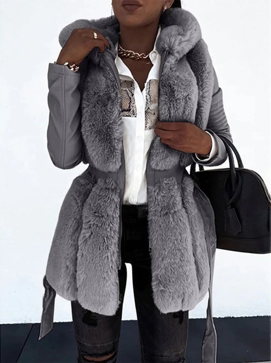 Veste femme en fausse fourrure – Coupe décontractée – Col montant – Manches longues