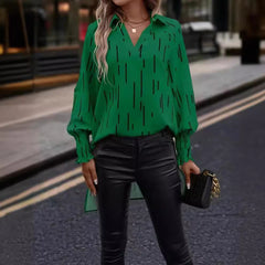 Blouse femme – Coupe fluide – Décolleté en V – Rayures graphiques – Manches longues