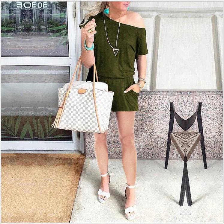 Combinaison femme – Coupe décontractée – Épaules dénudées – Manches courtes respirantes