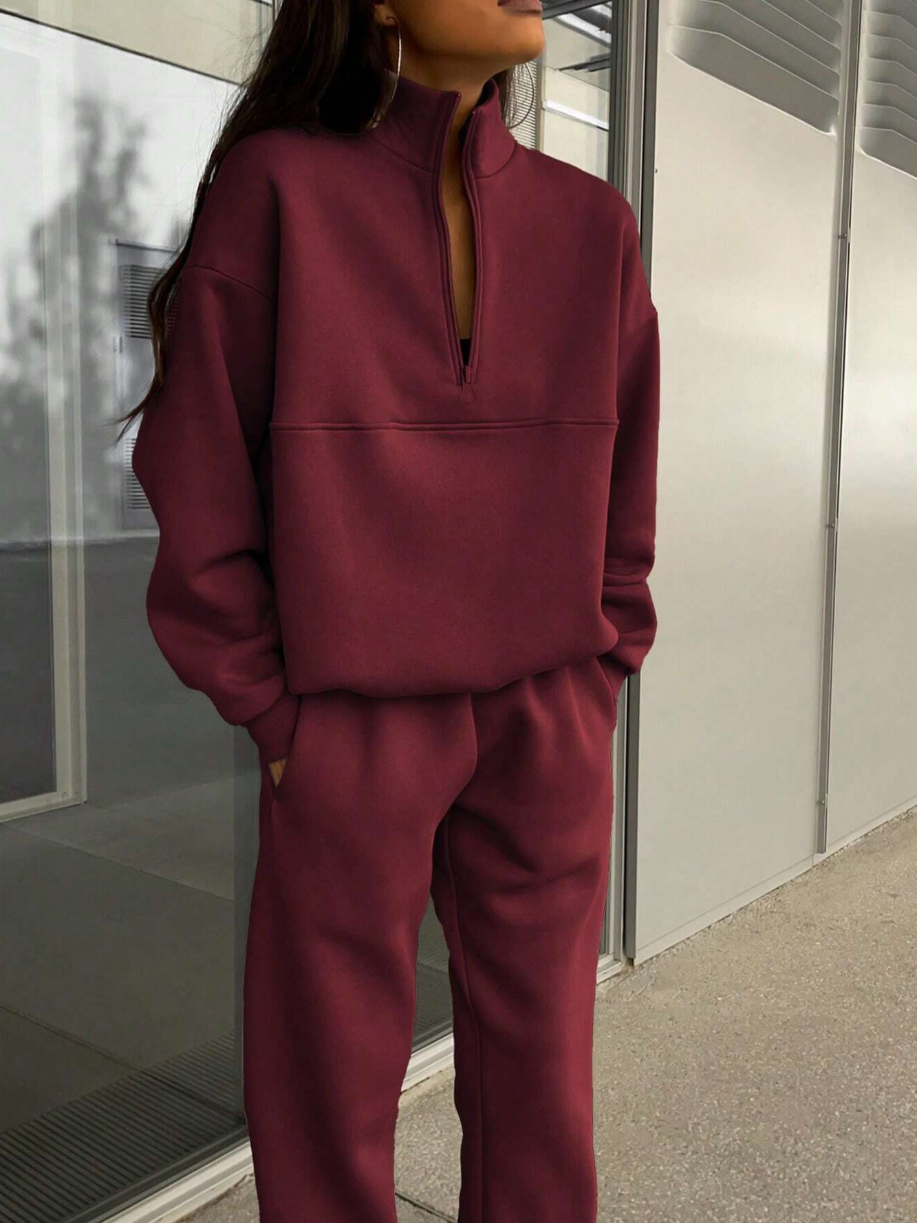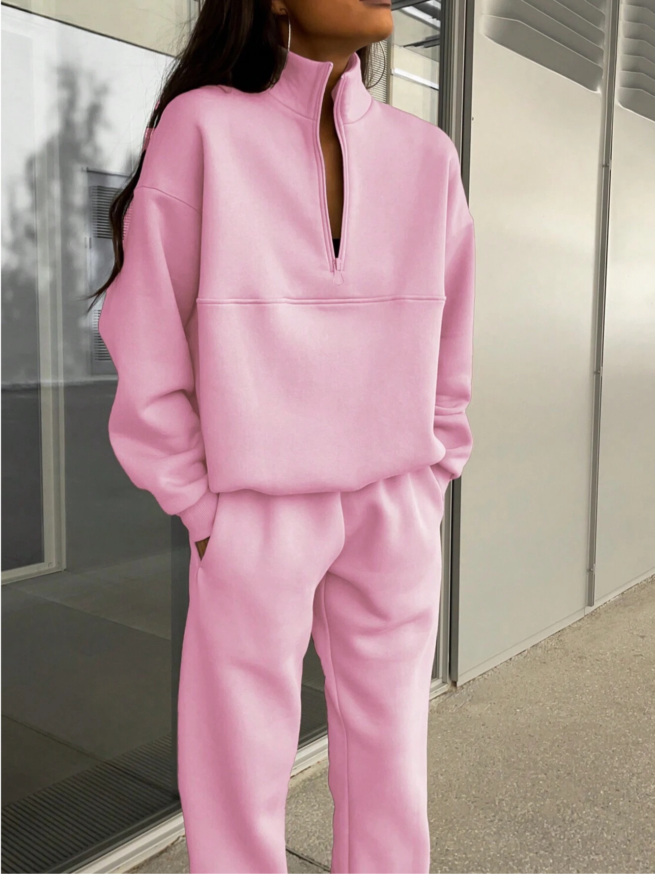 - Design : Ensemble décontracté avec haut zippé et pantalon fuselé