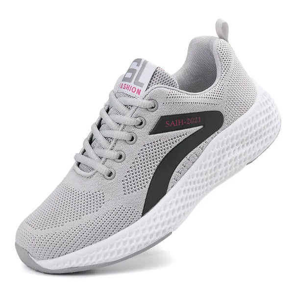Ces baskets basses pour femme sont conçues en tissu maille respirant avec une semelle extérieure synthétique texturée, offrant un confort adapté aux activités quotidiennes.