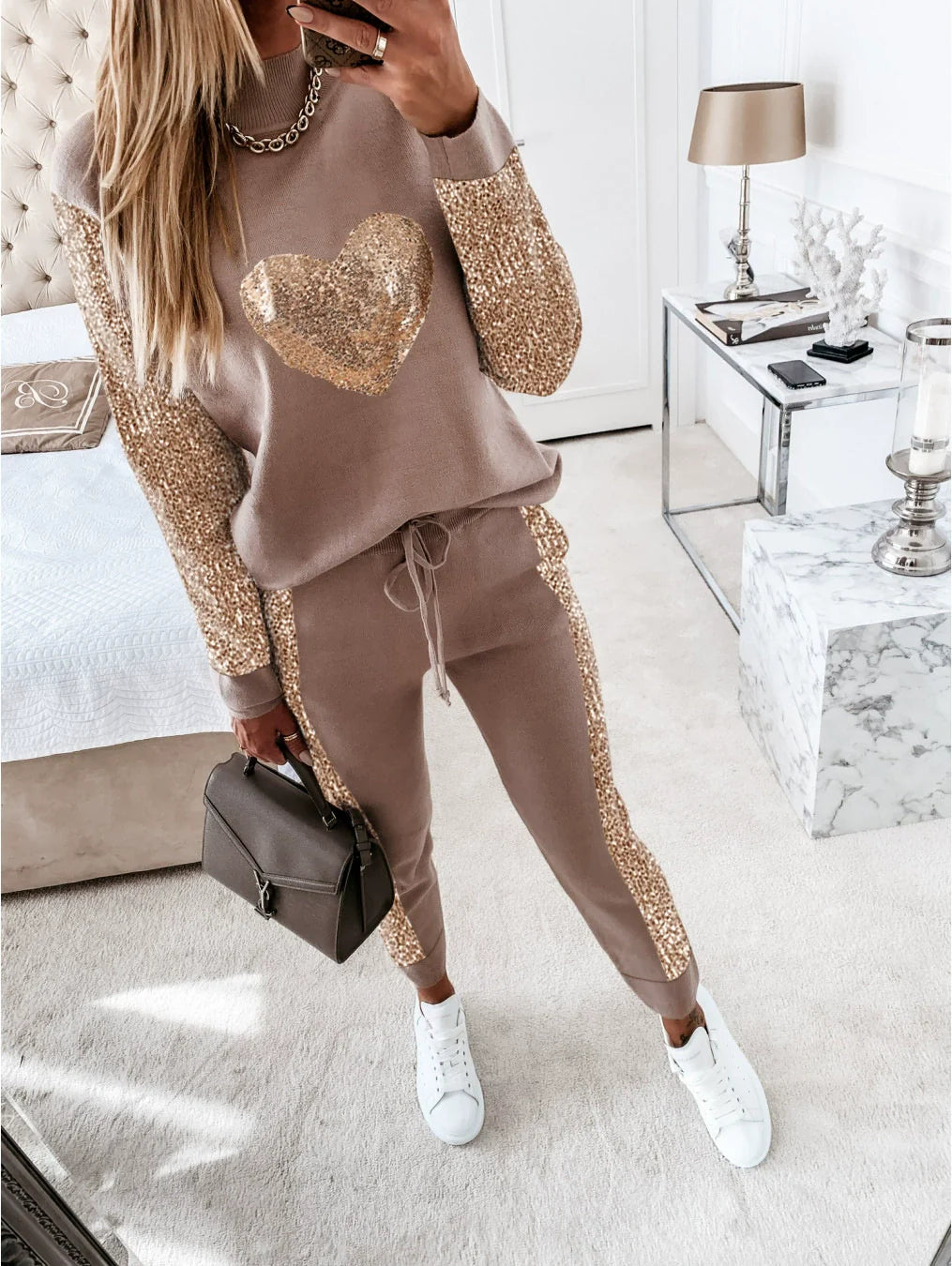 Douce Maille Coupe Décontractée Ensemble Deux Pièces