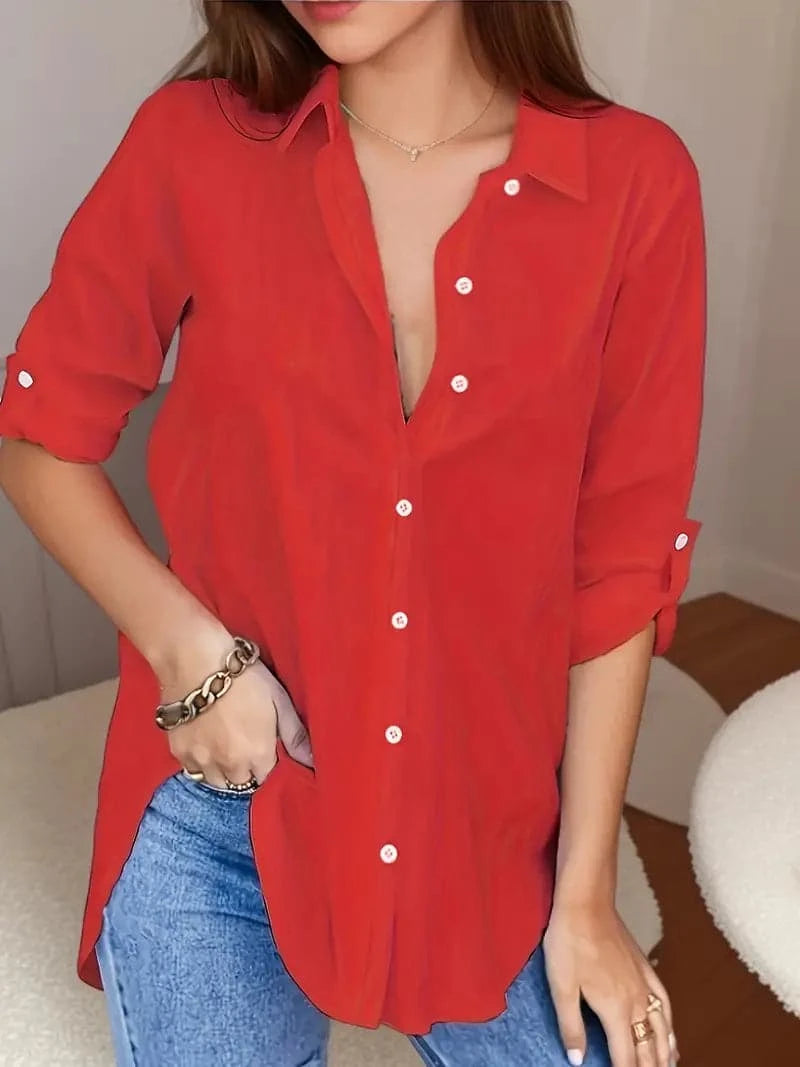 La coupe polyvalente est conçue pour flatter tous les types de corps, offrant une silhouette décontractée mais chic. Les manches retroussables avec des pattes de boutonnage fonctionnelles permettent d'ajuster la longueur des manches, vous permettant de personnaliser votre style. Cette chemise rouge à boutons se marie parfaitement avec des jeans, des jupes ou des pantalons, ce qui en fait une pièce incontournable pour toute garde-robe.