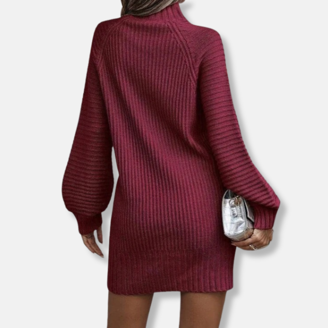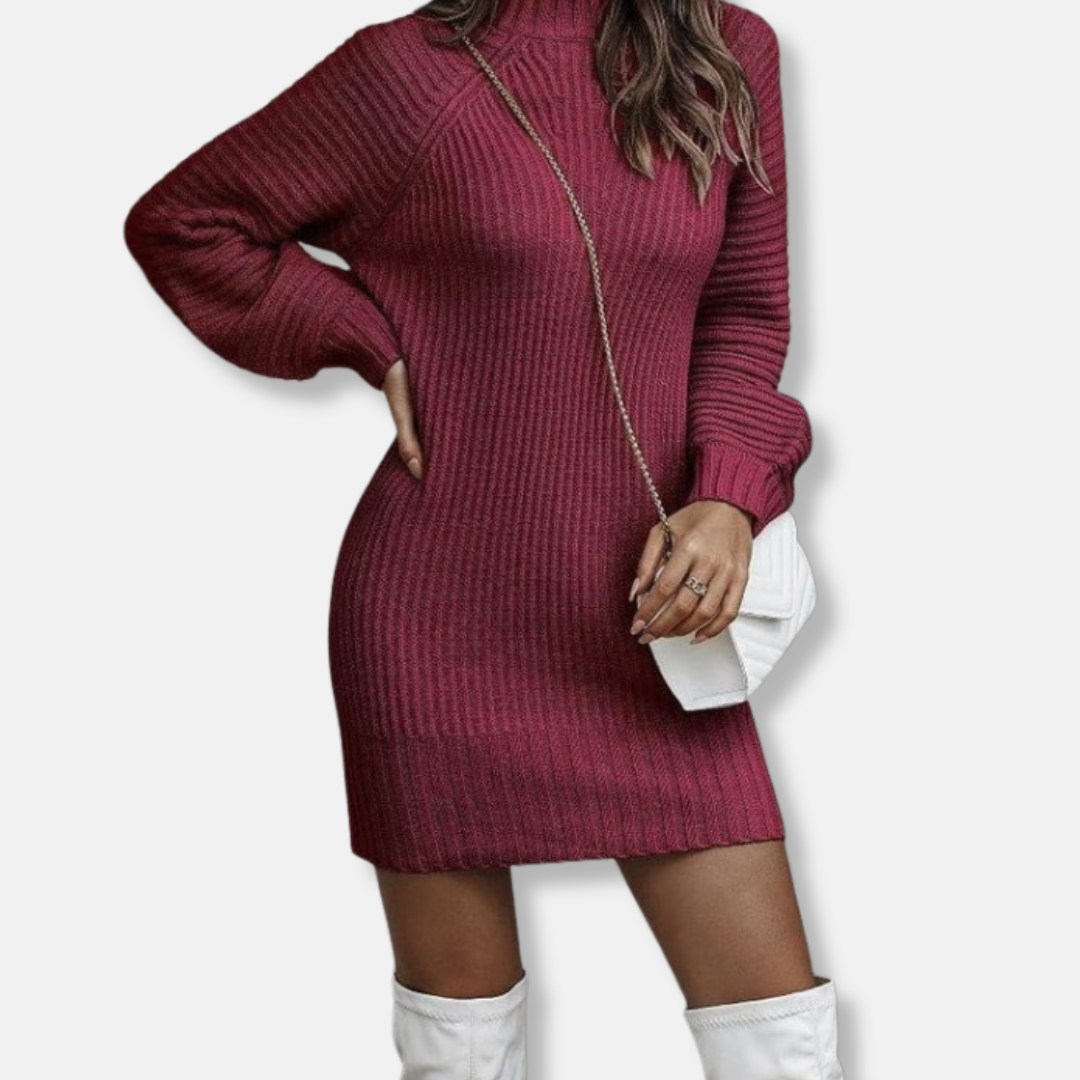 Cette robe présente une silhouette ajustée, rehaussée par un élégant col roulé et des manches longues. Idéale pour le quotidien, elle offre une allure sophistiquée et confortable.