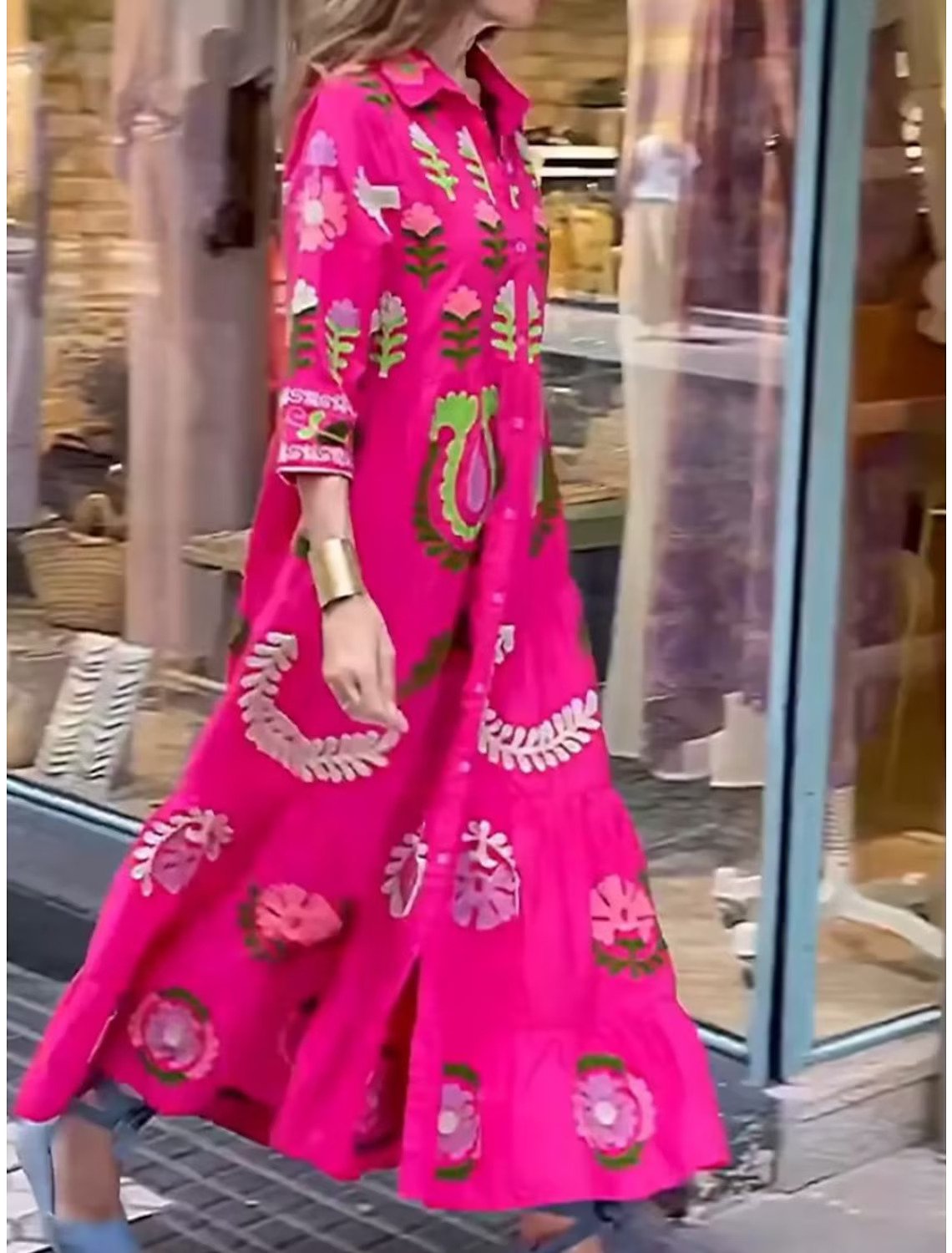 Découvrez la Robe Femme Longue Élégante - Coupe Évasée - Col Chemise - Manches Longues Imprimé Graphique de Francis Laurent. Fluide et confortable, avec son imprimé graphique audacieux et sa coupe évasée flatteuse, cette robe est parfaite pour toutes les occasions. Son col chemise et ses manches longues apportent une touche d'élégance.