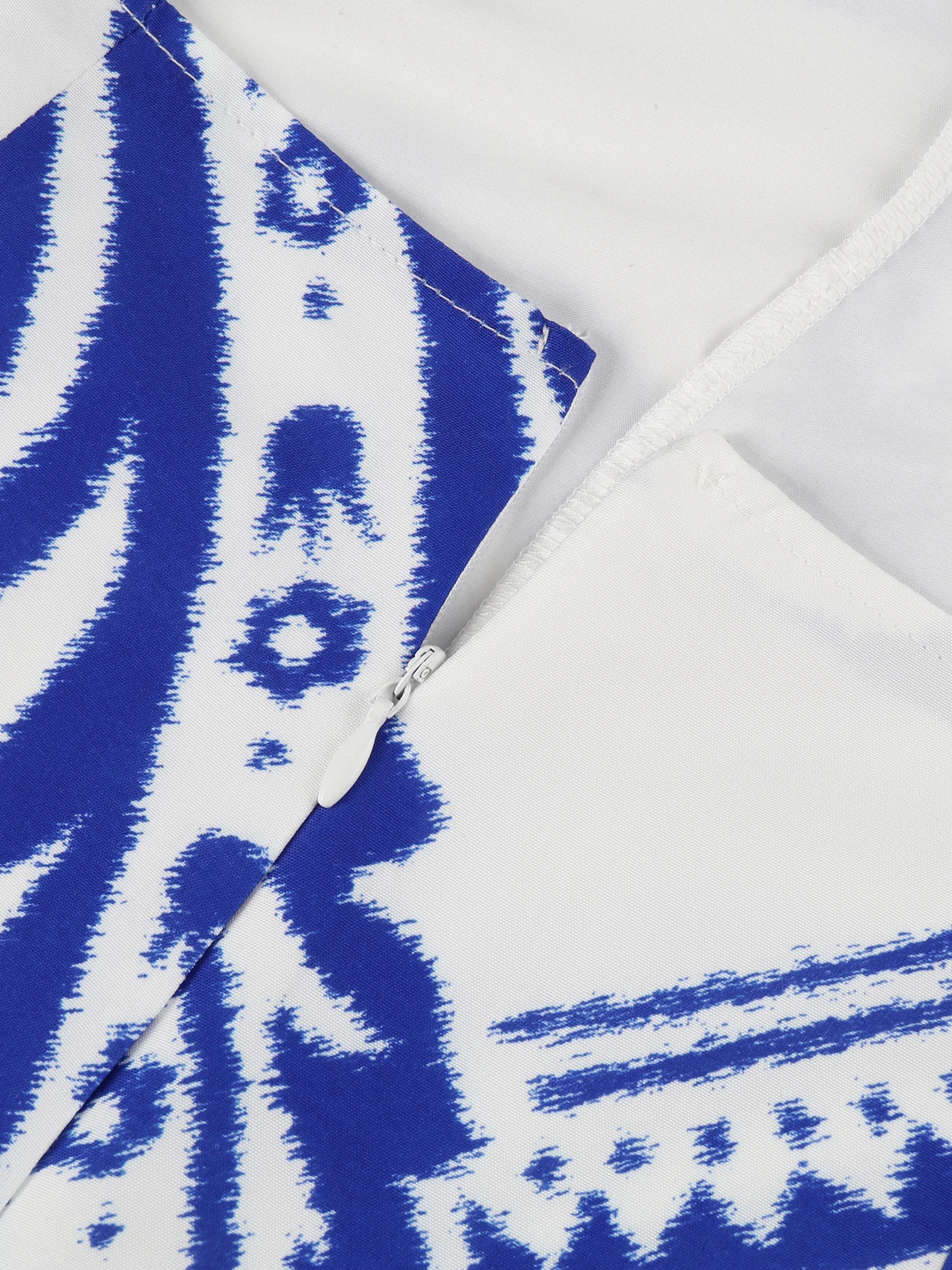 - Design: Maxi, décolleté plongeant, découpes à la taille, motif floral