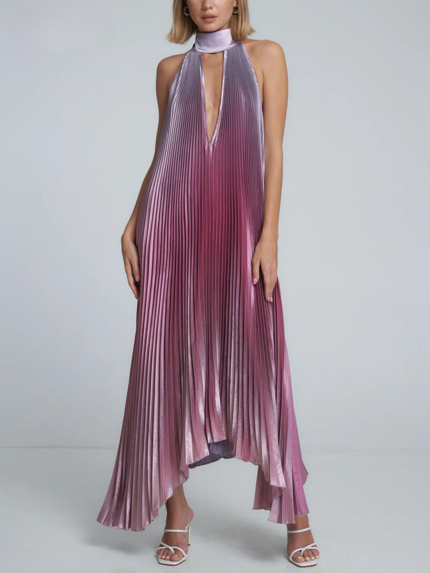 Découvrez l'élégance de la Robe Longue Femme – Style Plissé – Sans Manches – Col Halter Élégant – Motif Abstrait par Francis Laurent. Fluide et aérienne, cette robe maxi à col halter et imprimé abstrait est parfaite pour un look sophistiqué et tendance.