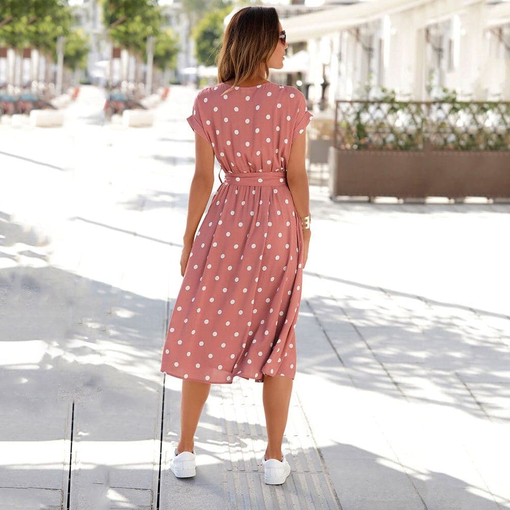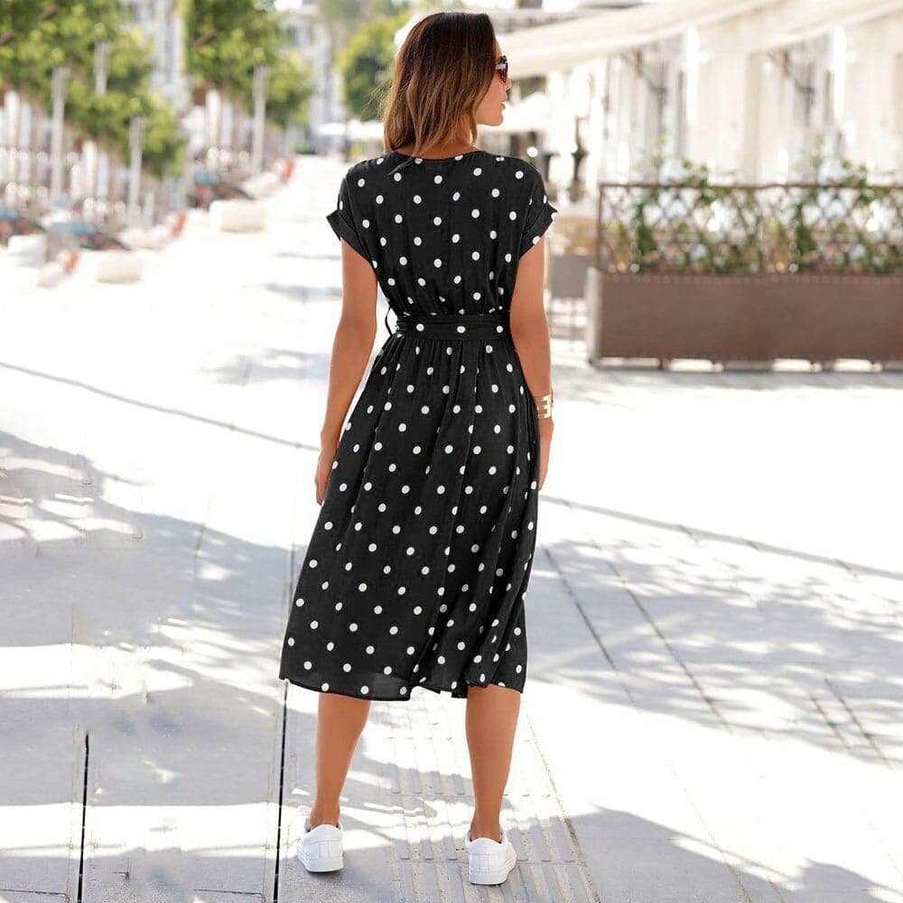 Capturez l'essence du chic estival avec notre charmante Robe Midi à Pois ! Conçue pour les femmes à la recherche d'un mélange de style intemporel et de touche moderne, cette robe enchanteresse est parfaite pour toute soirée quotidienne ou sortie décontractée.