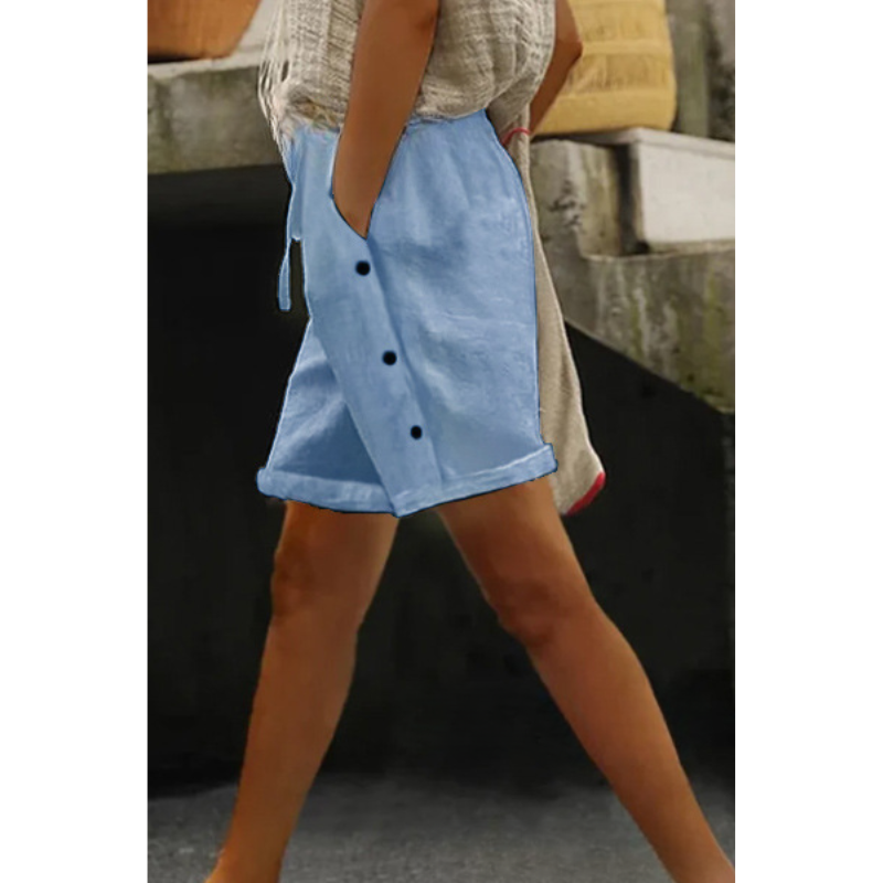 Rehaussez votre garde-robe décontractée avec ce short chic pour femme, orné d'un bouton intemporel pour une touche d'élégance. Conçu pour le confort, il est parfait au quotidien et s'accordera parfaitement avec vos hauts préférés.