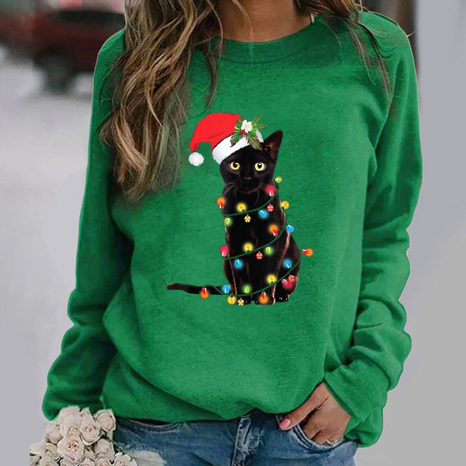 Découvrez notre Sweat à Capuche Coton Doux à Coupe Décontractée pour femme. Idéal pour Noël, ce pull ultra confortable avec motif chat et manches longues est parfait pour un style décontracté et chaleureux. Votre allié mode pour les fêtes !