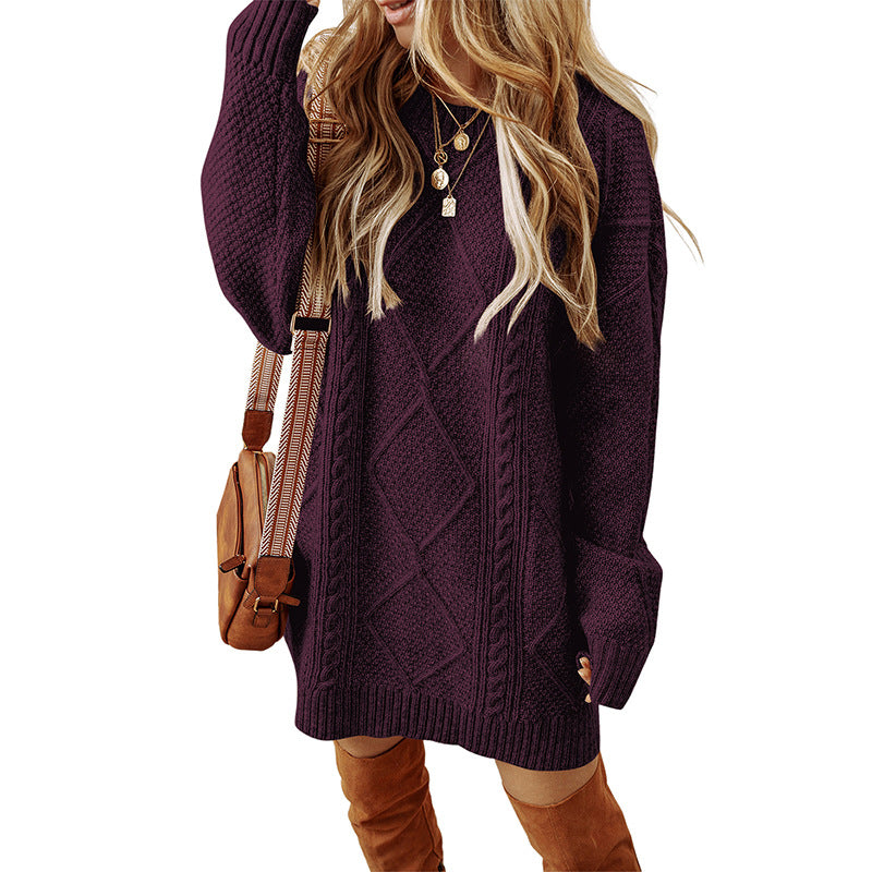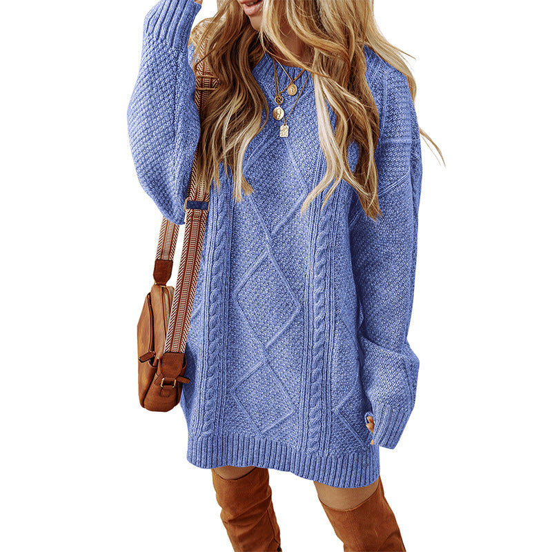 Sweat-shirt femme – Maille torsadée – Coupe ample – Longueur genou – Manches longues